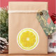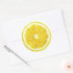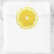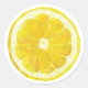 Adesivo amarelo redondo com fatia de limão.