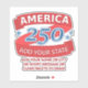Create your own die-cut America 250 stickers in red, white and blue. Add your state then personalize further with your custom message in red lettering just below the main design. These kiss-cut stickers for the Semiquincentennial are totally unique merchandise for promoting and celebrating the USA's 250th anniversary.
