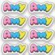 O nome Amy em letras coloridas de bublegum.