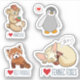 Esta é uma coleção de autocolantes de animais bonitos de desenho animado: um hamster com morango, pinguim bebê bonitinho com coração, eu adoro pandas vermelhas e uma raposa-fênico adormecida com o texto "Eu adoro raposas de fênico". A raposa de fenn está dormindo com uma pincelada vermelha de panda. Eles não são apenas bonitos? Aproveite! ♡