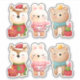 Vinheta de contorno com uma ilustração fofinha, com um coelho, um urso e um veado, todos vestidos com equipamento festivo. Adorável e caprichoso.