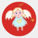 Um anjo pequeno bonito do feriado em um fundo vermelho brilhante é certo fazer seus dias festivos.