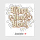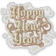 vinheta vinil de 4" x 4" com corte personalizado com uma imagem do sentimento de feriado "Feliz ano novo!" em letras brilhantes e brilhantes em meio a estrelas douradas. Veja o adesivo quadrado correspondente, cartão de saudação de 5" x 7", convite de 5,25" x 5,25", etiqueta, confetti e papel de embalagem. Veja a coleção inteira do New Year Sticker na categoria CARDS & STICKERS na seção HOLIDAYS.