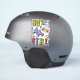 Ilustração colorida com estilo Memphis com design de texto e skate de rolo, caixa de boom, cassete e formas geométricas com "anos 80 Rapariga"