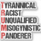 Anti-Trump acrostista sobre o tirano. Racista Tirânico Não Qualificado, Misógino, Panderer. Um design político de resistência contra Donald Trump. Resista com este dom liberal engraçado.