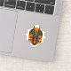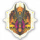 Esta imagem cativante reimagina o antigo deus egípcio Anubis num contexto moderno e estilizado. Representado como uma divindade cabeça-de-casaco, Anubis é adornada com uma armadura metálica e um cachecol roxo vibrante, dando-lhe uma aparência feroz e imponente. Seus olhos brilhantes e presas afiadas transmitem uma sensação de perigo e poder. O deus é enquadrado por um complexo padrão geométrico, que lembra símbolos sagrados, e é flanqueado por dois crânios de ouro, enfatizando ainda mais sua conexão com o submundo. A composição global é impressionante e visualmente atraente, misturando a iconografia tradicional egípcia com elementos design contemporâneos.