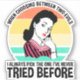 Ao Escolher Entre Dois Mau Eu Sempre Escolho O Que Nunca Tentei Antes. Este acessório de citação engraçada e retrógrada faz um presente excelente para um homem ou mulher que tem reputação de má decisão ou ser um encrenqueiro, e ama sarcasmo. Engraçado dizer design para qualquer um que ama se envolver em desgraça com seus amigos, gosta de ir a uma festa, se meter em problemas ou bebendo juntos. Perfeito para qualquer um com senso de humor. Possui uma mulher inocente contra um pôr do sol.