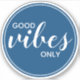 Todos nós precisamos de mais energia e pensamentos positivos! O design da citação Apenas Boas Vibrações apresenta um fundo circular azul clássico com letras brancas. Compartilhe algumas afirmações positivas para onde quer que sua jornada o leve! Outras cores e tamanhos disponíveis.