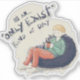Uma pessoa em uma postura relaxada fica sentada em uma cadeira de saco de feijão, segurando uma bebida enquanto cercada pela frase "É um único dia existente." A paleta colorida é acolhedora, com verduras mudas e vermelhos criando uma atmosfera de calmo contentamento.