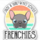 Só Uma Menina Que Ama Francês. Este cúmplice francês engraçado e fofo para o amante de buldocos é um presente perfeito para uma mãe de cachorro que é uma dona de frenquês. Se você é uma mama de cachorro e o orgulhoso dono de um buldogue francês de estimação, e você ama frenchias, cachorros e cachorros, esta design é para você! Inclui um desenho animado de um rosto de buldogue francês colocado contra um fundo solar retrô angustiado.