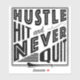 Grande design ousado para ferir e camogie fãs e jogadores! Com as palavras: Hustle Atingiu e Nunca Saiu e uma imagem de um furo / camán.