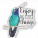 Um adesivo de "Aproveite as coisinhas" com um belo beija-flor de bico largo. O Barão-Mingbird é um pássaro minúsculo, incrivelmente colorido, da América do Norte e do México.