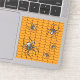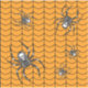 Um fundo laranja brilhante cria uma base perfeitamente temática no Halloween para um padrão repetido de teia negra rastejando com aranhas. Essas aranhas, modeladas após a falsa viúva, apresentam um crânio branco brilhante em seus abdômen e outras marcas brancas em seu corpo e pernas.
