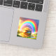 Este adesivo tem um arco-íris e um tesouro pintados nele.