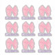 Um arco rosa está acima do texto roxo real. Você pode editar o texto para mostrar o nome de uma garota. Há nove arcos com nomes. Estes autocolantes seriam perfeitos para rotular os itens escolares.