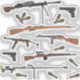 Um desenho vetorial com espingardas soviéticas WW2, armas automáticas e AT, pistolas e metralhadoras. Aqui podem encontrar: - metralhadora PPsh-41; - espingarda Mosin-Nagant; - metralhadora Degtyaryov DP-27; - metralhadora PPS-43; - pistola Tokarev T-33; - espingarda Tokarev SVT-40; - espingarda antitanque PTRD-41; - RGD-4 3 granadas de mão.