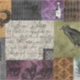 Arte gótica medieval do Halloween apresentando uma manta de retalhos de arte apóteca incluindo um corvo, cobra, crânios, antídotos venenosos e outros elementos góticos.