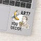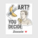 Uma tomada humorística da arte moderna — banana-fita, cara comendo, ousada "ART"? VOCÊ DECIDE" provoca pensamento.
