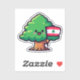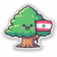Árvore Cedar Libanesa Cute, Segurando Sinalizador Libanês Sticker. Um adesivo de arte digital em árvore libanesa engraçado, exclusivo, criado exclusivamente por Arabix.
