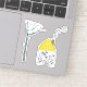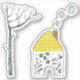 Dois adesivos numa folha. Uma é uma árvore nua e ramificada e a outra é uma bonito casinha floral com um telhado amarelo e sopros de fumaça saindo da chaminé. Pequenas imagens bonitas a serem adicionadas às páginas do seu álbum ou diário.