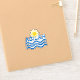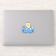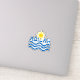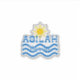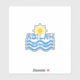 Texto Azul Asiá Marrocos, Ondas Azuis, Sol Laranja/Amarelo.