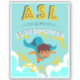 Este gráfico vibrante e inspirador mostra um jovem super-herói, representado a voar através do céu, expondo alegria e confiança. Embalado com a poderosa mensagem "ASL é o meu SUPERPOWER", este design celebra o American Sign Language como uma habilidade única e poderosa. O pano de fundo apresenta um céu azul claro e brilhante com explosões dinâmicas de amarelo e branco, enfatizando o tema de super-herói. Esta ilustração serve como uma representação otimista das habilidades e orgulho dentro da comunidade surda e duro de ouvir, encorajando os espectadores a reconhecer a ASL como uma ferramenta e força formidáveis.