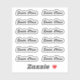 Esta folha contém uma dúzia de autocolantes personalizados de assinatura do Papai Noel em uma fonte do tipo "Script de Pincel" com estilo caligráfico em negrito.