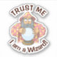 Um velho feiticeiro com capa rosa olhando para a bola mágica de cristal. Custom Text