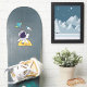 Um decal com uma ilustração de um homem espacial vestindo um traje astronauta branco flutuando sobre a lua. Ao longe está um planeta com anéis e um foguete voando para o céu procurando novos mundos para explorar.