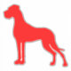 Um autocolante com um grande Dane. Bom presente para donos de cães e amigos do Mastiff alemão. Cor favorita de Doggenhaus, em vermelho. Excelente para todos, donos de carros com coração para o Excelente Gentle Giants.