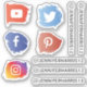 Espalhe a palavra e promova sua presença nas mídias sociais com nossos adesivos personalizados. Design apresenta Instagram, facebook, twitter, pinterest, ícone de tubo e nomes de usuário.