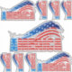 Estes autocolantes fabulosamente patrióticos são uma excelente escolha para o 4º de julho ou para o "Dia Memorial". Observe que as áreas "brancas" são transparentes, de modo que sua superfície de fundo aparecerá. Para o efeito puramente vermelho, BRANCO e azul, você precisará colocar os adesivos em algo branco.