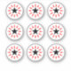 Estes autocolantes são feitos em alvos redondos de uma máquina de pinball de tamanho padrão de ajustado, com cerca de 1" de diâmetro. Por favor, note-se: estes autocolantes não têm um furo central e, se desejado, terão de fazer o seu próprio.