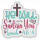 Este adesivo vibrante mostra um verso Bíblia elevador com elementos decorativos, com as palavras Ele o sustentará junto com uma referência a Isaiah 46:4.
