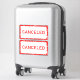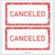 Etiquetas de aviso canceladas, vermelhas e brancas, com a ortografia americana com um 'L'
