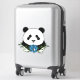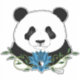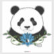 Retrato de um urso panda fofo com uma flor de lótus azul num pano de fundo verde