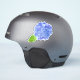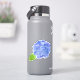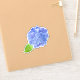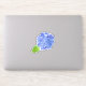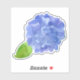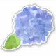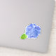 Um vinilhante com flor de hydrangea em uma variedade de tons azuis na pétala da flor e uma mão verde de abacate solteiro pintada com aquarela.