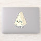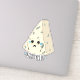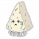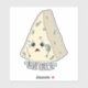 Um adesivo engraçado de um bloco de queijo azul e triste moldado. Um adesivo de comida engraçado para amantes de queijo e alimentos