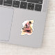 Design of a ballerina kneeling during her recital. Image created with yellow and pink clouds of color in the background, blending into the ballerina figure.