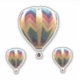 Balões de ar quente em 3 tamanhos diferentes. Cores do arco-íris em faixas de diafragma.
