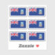 Seis vinilhotas com a bandeira das Ilhas Malvinas (Território Ultramarino Britânico), um símbolo azul, com a bandeira da União no cantão e a casaco de armas das Ilhas Malvinas na mosca