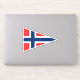 Bandeira triangular do vinil-autocolante norueguês. Etiqueta decal Patriótica para automóveis, carros, caravanas, reboque, RV, mala, laptop e outros artigos. Adicione seu próprio texto personalizado ou letras monográficas. Design de forma oval ao estilo clássico europeu. Legal ideias para ele ou para ela. Adicione seus próprios códigos internacionais de país, estado ou cidade, opcionalmente. Pequenos e grandes dimensões. Orgulho escandinavo.
