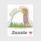 Um cachorro prairie giro está feliz cheirando as flores. Desenhado no estilo de desenho animado.