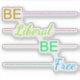 Vinyl sticker featuring lines and text design saying "Be Liberal Be Free". The design allows you to change the colors of the lines and text in the "Edit this design" section.