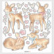 Um adesivo de quarto de bebê ou criança com veado bebê com flores e pássaros cor-de-rosa e azuis.