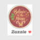 Embrace the enchantment of the holiday season with this elegant Christmas design. Set against a rich dark red circular background with a textured gold border, the phrase “Believe in the Magic” shines in graceful golden script with a subtle glittery, distressed effect. Festive details—including a holly sprig, sparkling starbursts, and red-and-white candy canes tied with a golden bow—surround the message, while faint snowflakes and swirling patterns add depth and charm. Perfect for spreading festive wonder, warmth, and timeless Christmas magic.