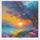 colorida árvore azul e púrpura florida Belo nascer do sol no horizonte sobre gramíneas coloridas da lagoa AI ART criada por minx267