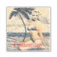 Vintage Pinup Blonde Bikini Modelo ajoelhado na borda da areia enquanto as ondas a esmagam, para personalizar