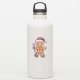 Um homem de pão de gengibre vestindo um chapéu de Papai Noel e segurando uma cana doce.