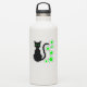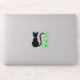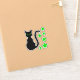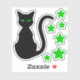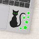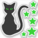 A silhouette cartoon of a black cat with a star hanging from their tail. Also included are some matching stars in different sizes.